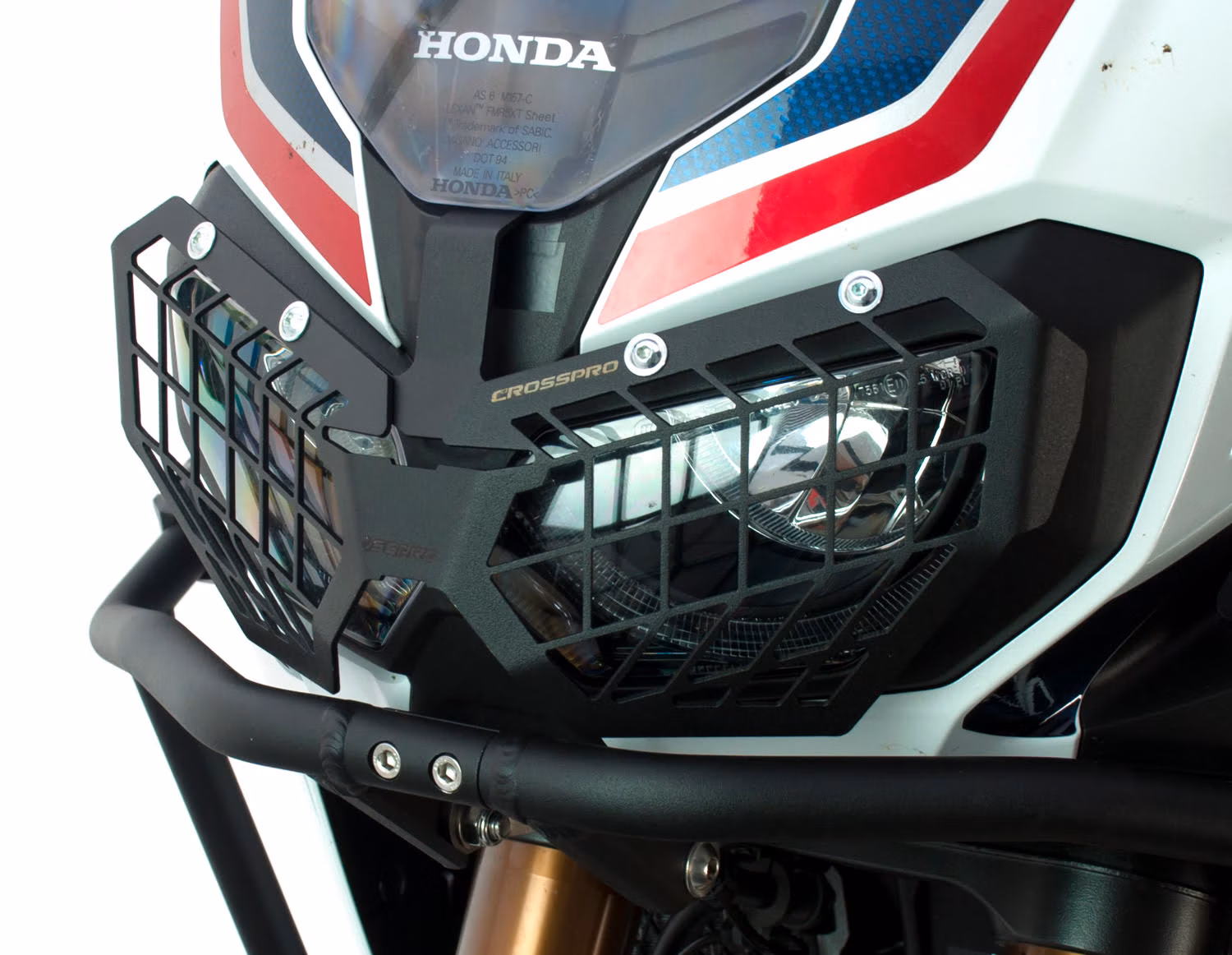 Protect your Honda CRF1000L Africa Twin and Adventure Sport headlight with this stainless steel protector.