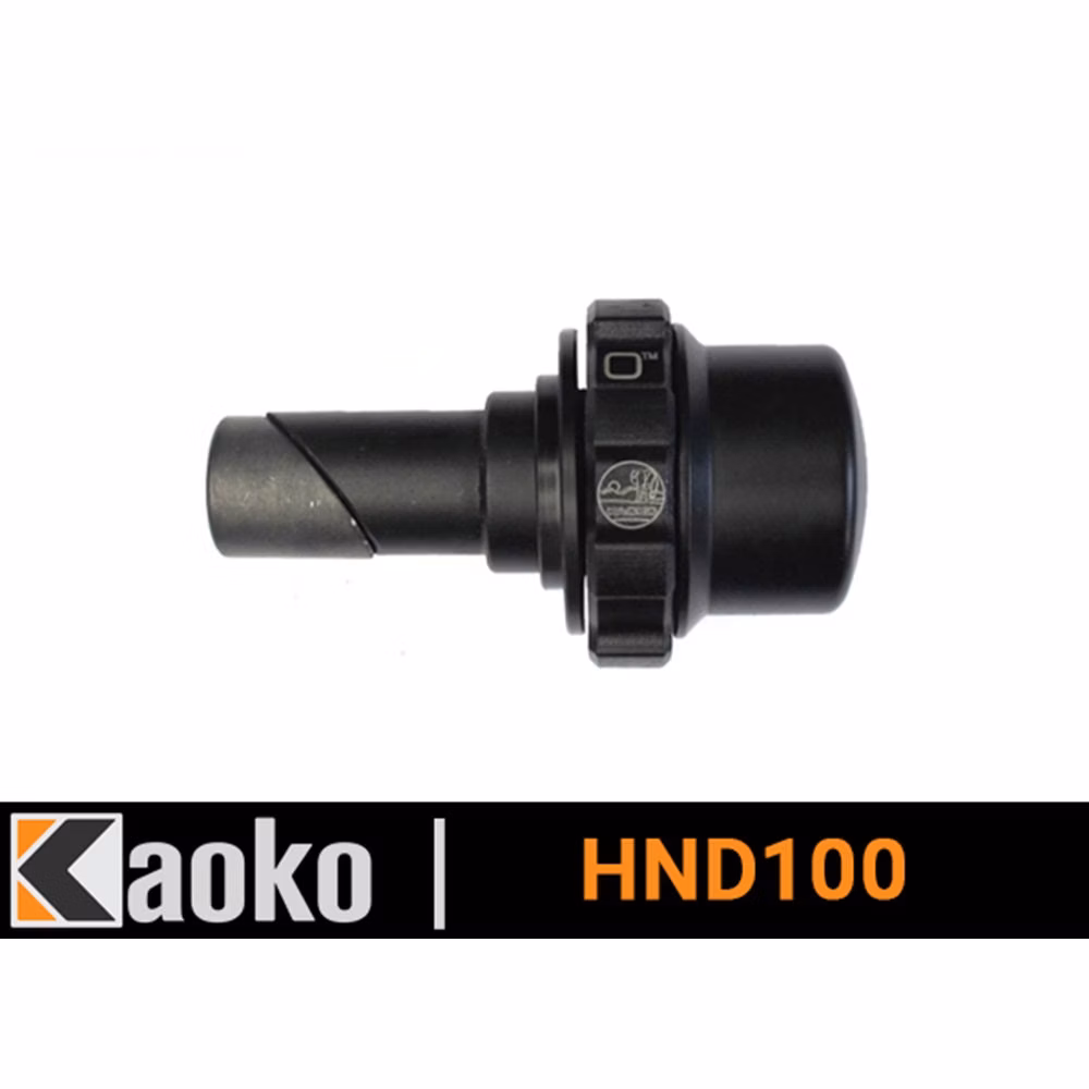 The Kaoko Throttle Stabilizer kit reduces rider fatigue and strain by allowing for easy throttle control and adjustments, featuring a robust friction nut and special handle bar end weight that mimics OEM design. It operates by gripping the stabilizer between fingers and palm, enabling smooth action and ease of use even with heavy gloves.