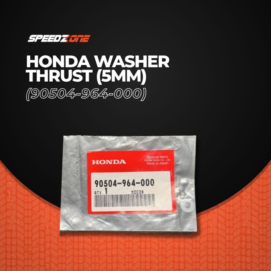 Honda OEM thrust washer, 5 mm thick, part number 90504-964-000—used for precise axial spacing and load distribution in Honda assemblies.