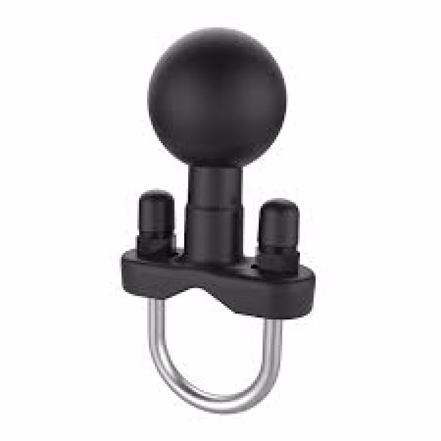 The RAM-B-231-1U a 1″ rubber ball designed to sit at right angles to the mounting rail. The stainless steel coated metal u-bolt accommodates rails in diameter from 1″ to 1.25″ in diameter. The base also includes black cover caps to be placed over the exposed ends of the u-bolt.