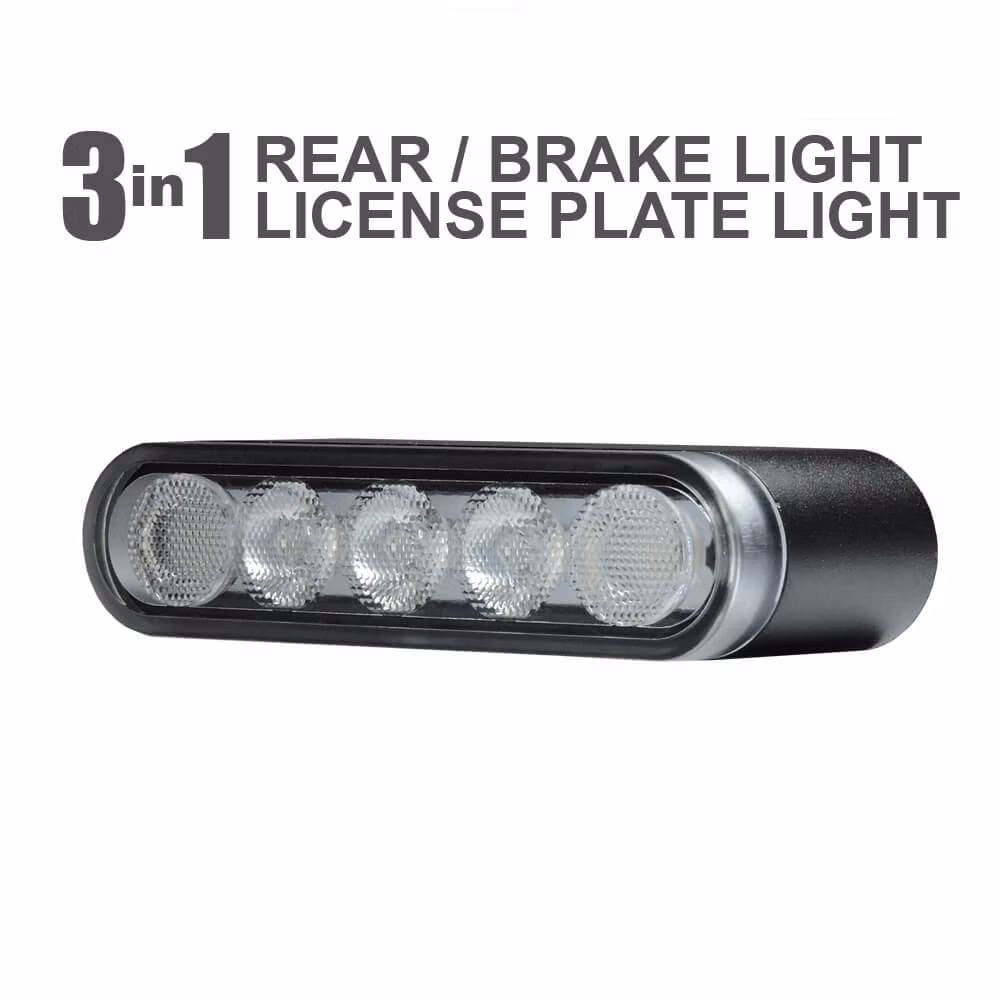 The T2 Tail Light Darkbuster is a powerful and compact tail light that combines rear position, brake, and license plate lighting in one unit. Featuring an Osram chip for maximum visibility, it’s perfect for riders who want a reliable and efficient taillight solution. With its weatherproof design and operating temperature range of -20℃~+60℃, this tail light is built to withstand the elements and provide consistent performance.