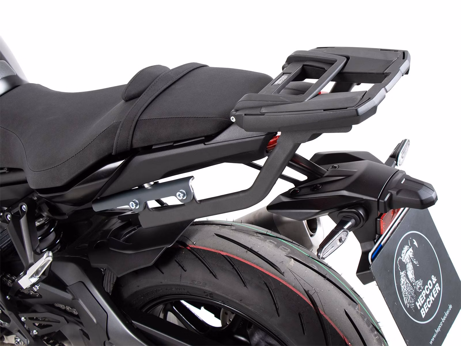 Elegant topcase carrier for Yamaha MT-10, made from premium aluminum, suitable for Hepco&Becker topcases